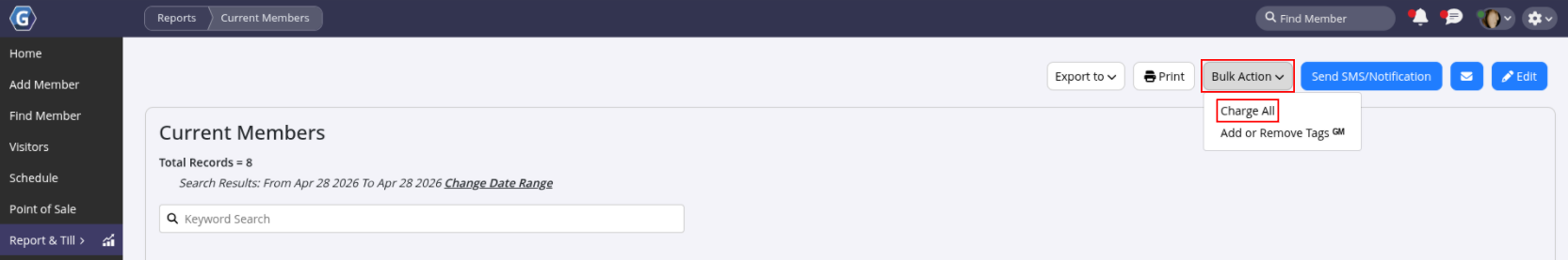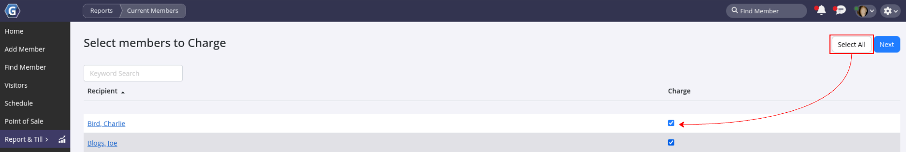 For example, to charge all current members, use the Current Members report.