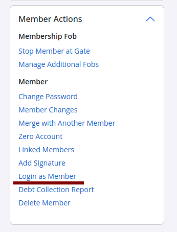 This allows you to log into the Portal as the selected member and see exactly what they see. It’s especially useful for troubleshooting issues that the member may report when using the Portal.