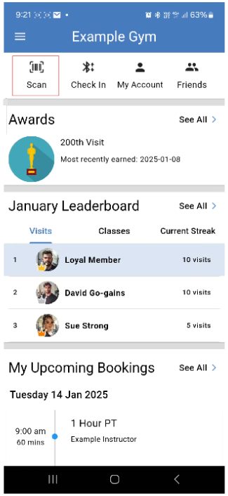 QR Code entry lets members unlock doors using the GymMaster Member App.