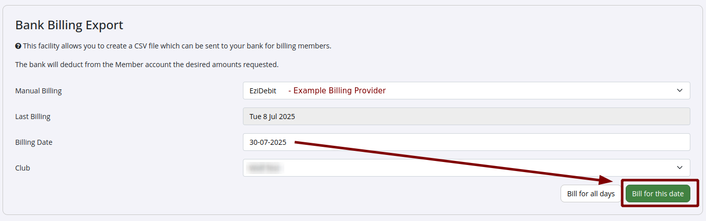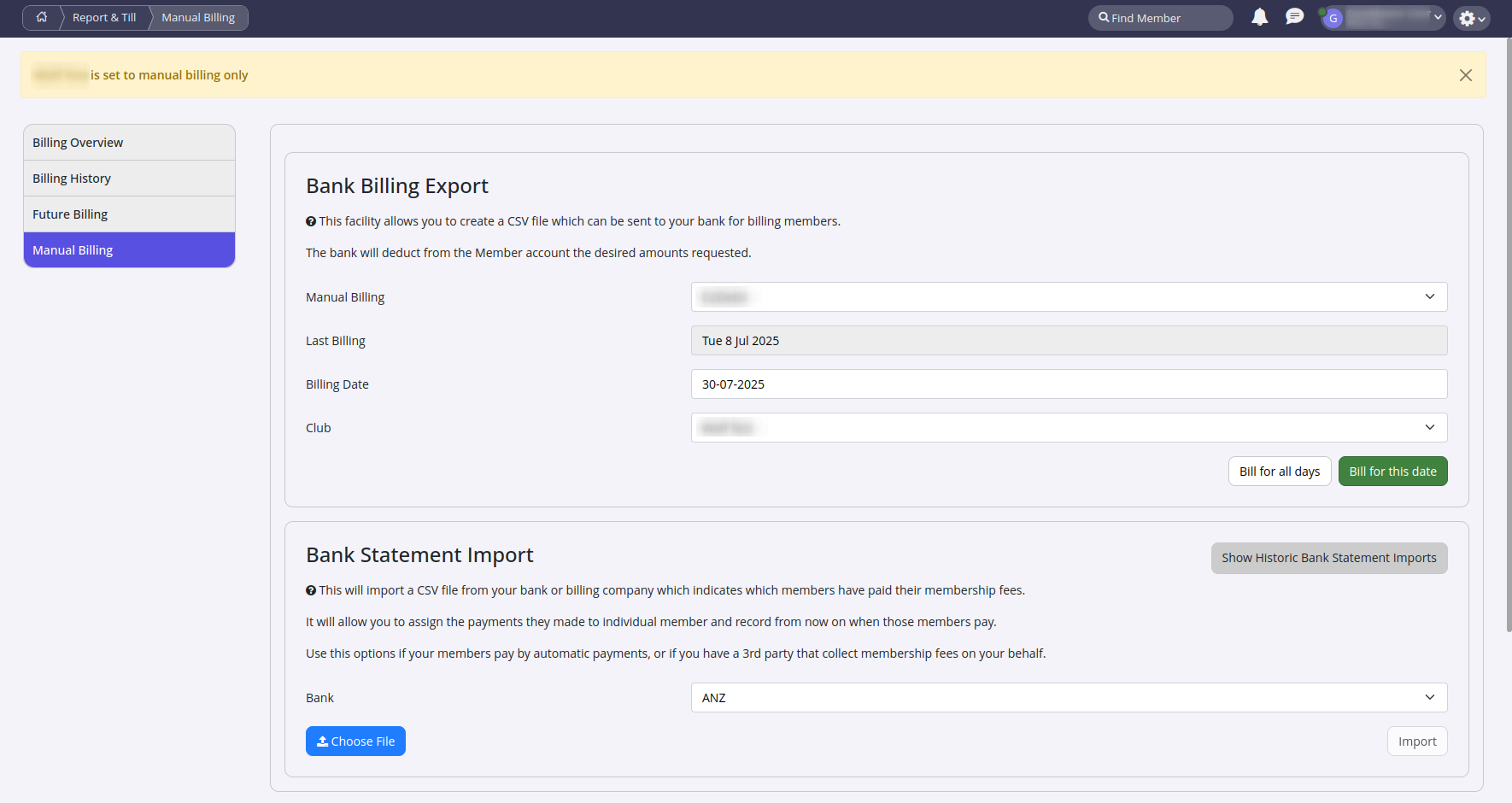 Some clubs choose to stick with manual billing long term. This usually involves some custom setup and is arranged directly with their local bank, if supported.