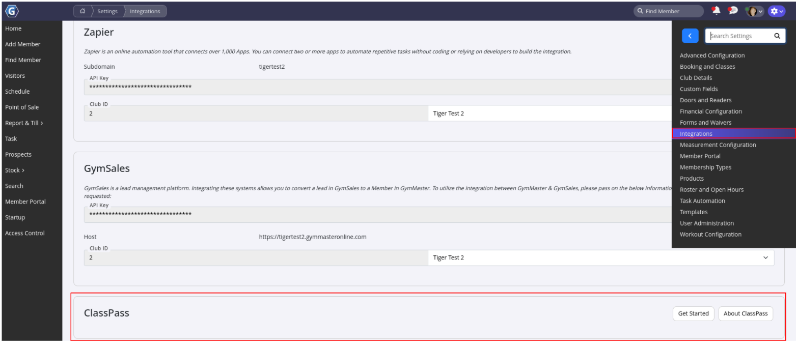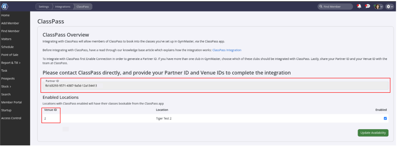 Once complete, enable the integration in GymMaster via Settings > Integrations > ClassPass