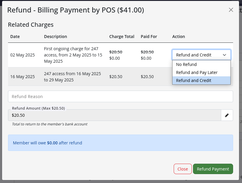 If you’re refunding a manual payment (e.g. cash, EFTPOS), you can do this in the member’s Accounts tab.
