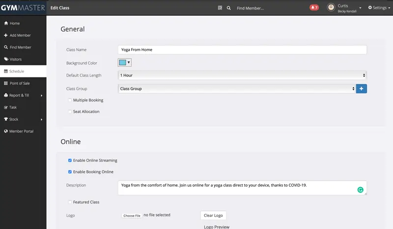 When it’s time to go live, open your GymMaster schedule and select the class you want to stream.